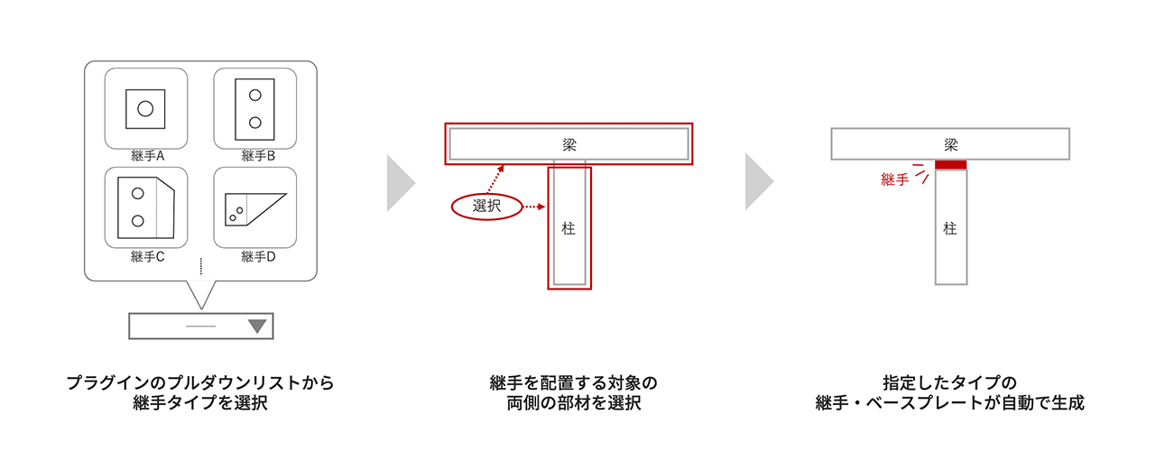 02専用プラグインで選択した部材同士をつなぐ継手やベースプレートを自動配置