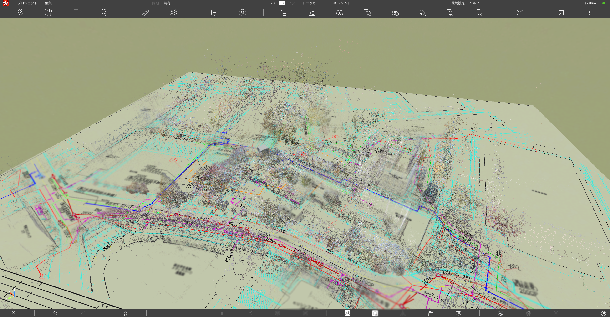 Revizto上で図面と現況を重ねることで、「古い図面に描かれた配管」が「現地のこの木と、この縁石の間を通っている」という