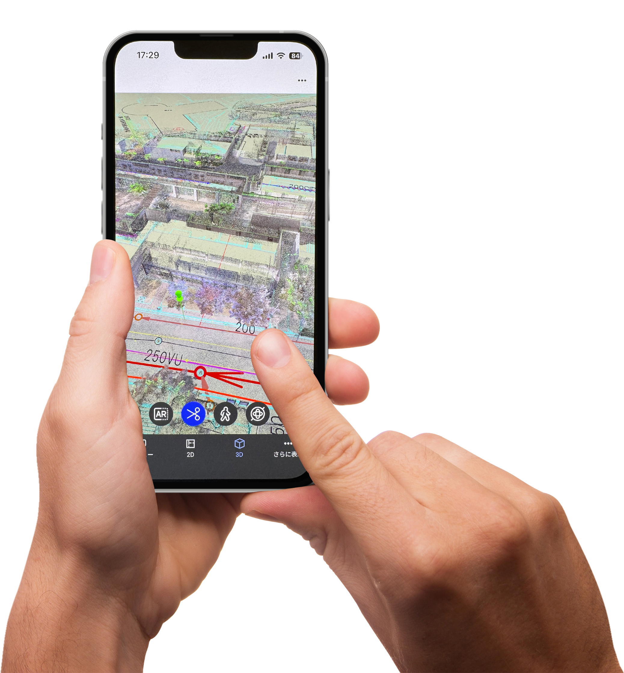 図面には載っていない「空中の電線(架線)」や「樹木の高さ」もスキャンデータで鮮明に表示されました。